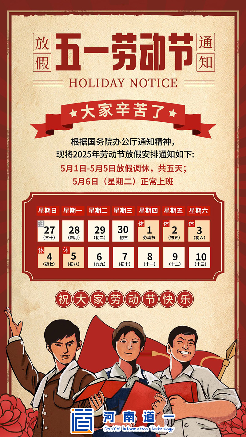 河南道一信息技術(shù)有限公司關(guān)于2025年“五一”勞動(dòng)節(jié)放假通知!